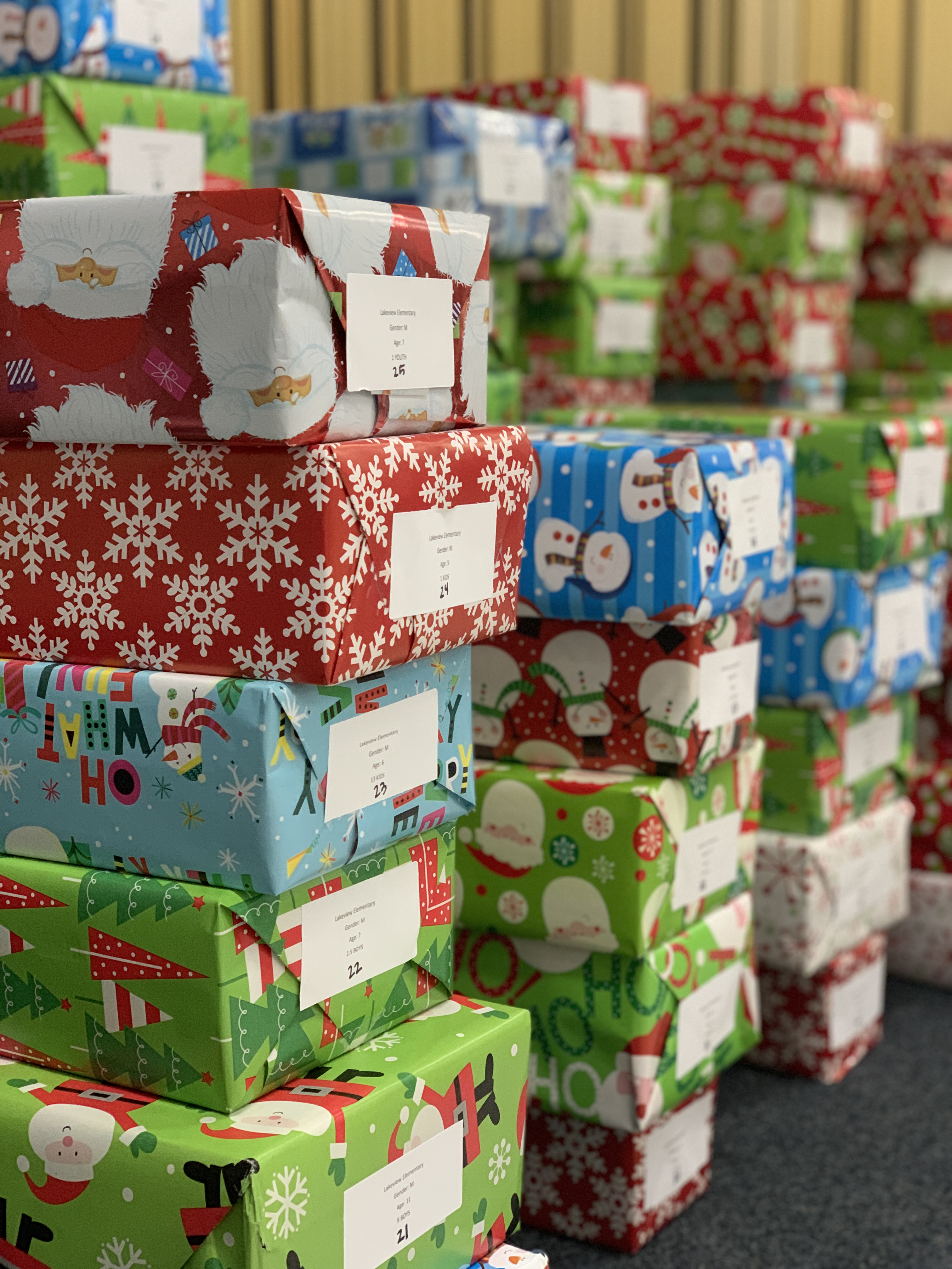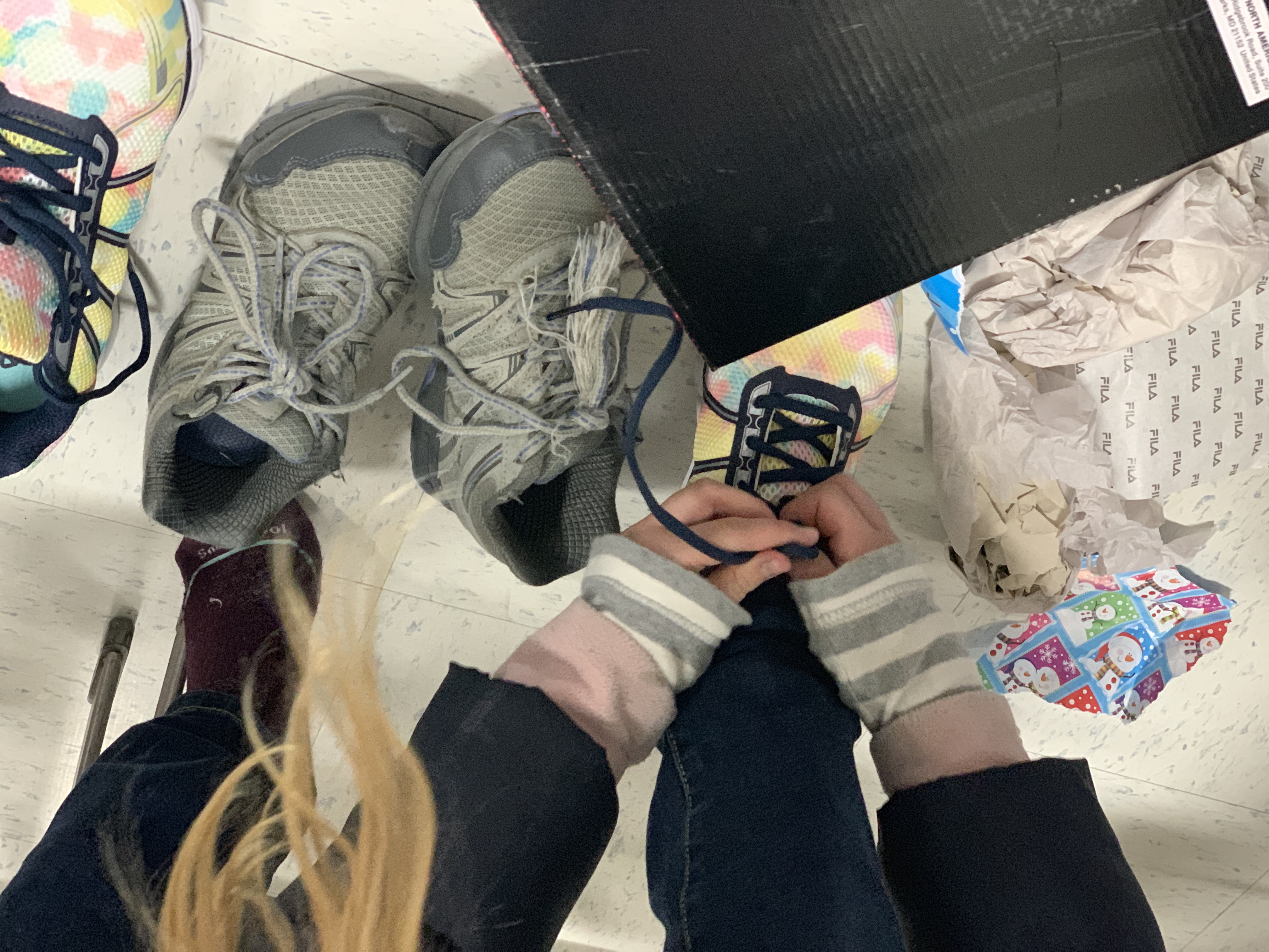 Photo attached: America First Credit Union employees and volunteers deliver new, gift-wrapped shoes to underprivileged children during the annual Warm the Soles event.