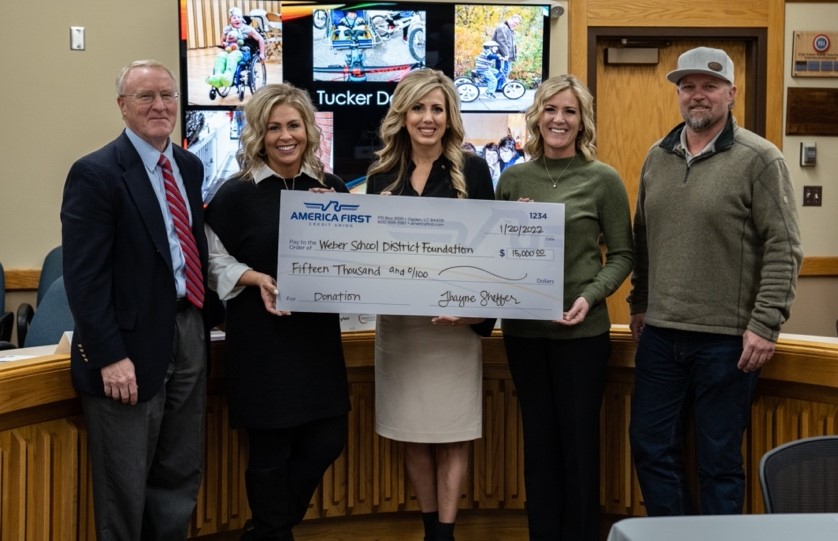 “Weber School Foundation is so lucky to have such an amazing partnership with America First Credit Union,” said Emily Vause Oyler, Executive Director Weber School Foundation. “This very generous donation will help fund classroom grants, school grants, field trips, student sponsorships and support programs like The Leader in Me and Hope Squads. We would not be able to accomplish all we do without the generous contributions of community members like America First Credit Union. Thank you for consistently stepping up for the 33,000 students in Weber School District.”
